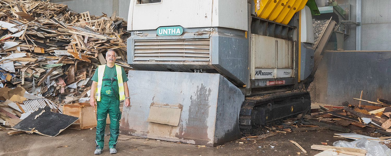 Utilizamos la XR3000RC mobil-e de UNTHA como instalación de trituración móvil y estacionaria en nuestra empresa. El sistema de corte RC nos permite procesar de forma fiable y energéticamente eficiente diferentes materiales de desecho, como restos de madera, residuos mixtos de la construcción y residuos voluminosos.