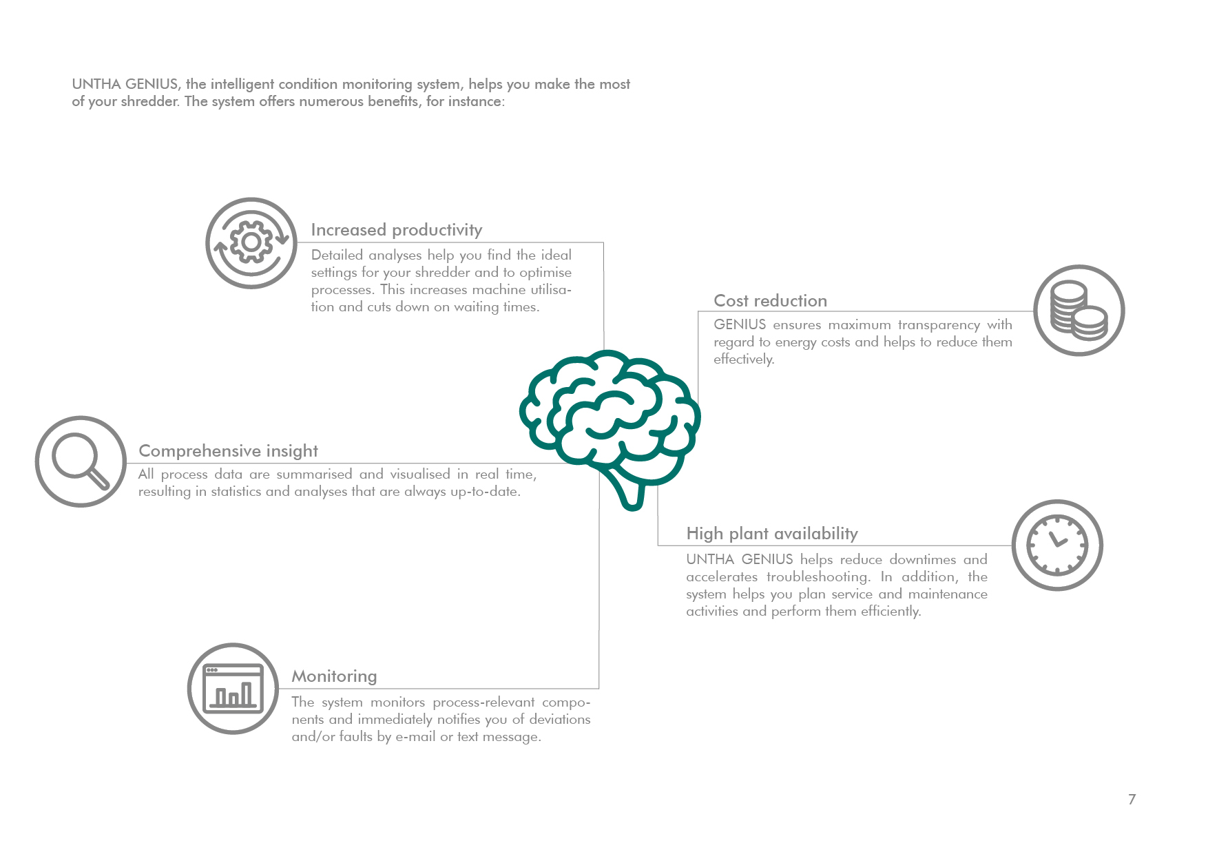 UNTHA GENIUS, the intelligent condition monitoring system, helps you make the most of your shredder. The system offers numerous benefits, for instance: