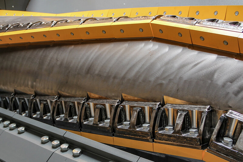 Ten najnowszej generacji nóż tnący, zdolny do osiągnięcia wydajności do 40 ton na godzinę – zarówno w stacjonarnych, jak i mobilnych rozdrabniaczach XR-XC – może pracować z niską prędkością obrotową rotora rzędu 65 obr./min przy złożonych strumieniach odpadów lub 85 obr./min w przypadku czystszych materiałów wsadowych. Podczas gdy inne maszyny tego rodzaju często pracują przy dużo wyższych prędkościach obrotowych sięgających 250-350 obr./min, UNTHA dąży do osiągnięcia jak najwolniejszego zużycia, niezawodnych standardów bezpieczeństwa oraz najwyższej efektywności energetycznej na rynku. Nowa konstrukcja jest w stanie poradzić sobie z dużymi nierozdrabnialnymi przedmiotami bez długich przestojów, które często trapią operatorów zmuszonych do przeprowadzania poważnych remontów wymaganych w przypadku technologii wysokoobrotowej.