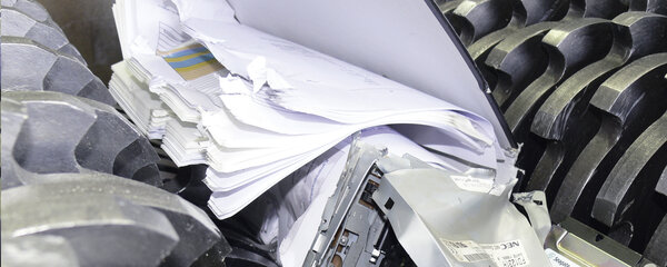 UNTHA'nın kendini kanıtlamış 4 şaftlı imha kırıcıları, mevcut DIN 66399 standardına uygun olarak tüm belge ve verilerin güvenli ve tavizsiz bir şekilde imha edilmesini garanti eder.